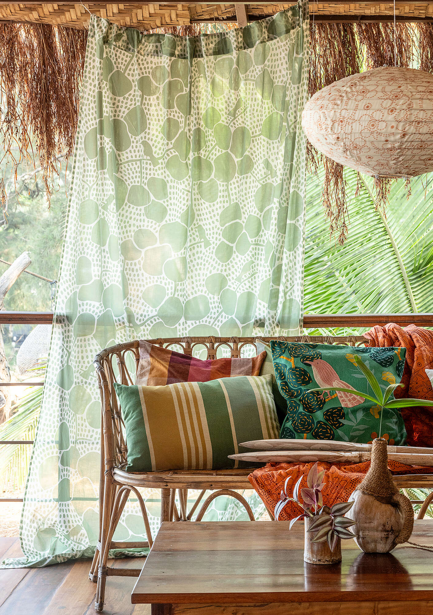 Gudrun Sjödén Homeware Homeware “galapagos” Curtain In Organic Cotton | Dusty Green