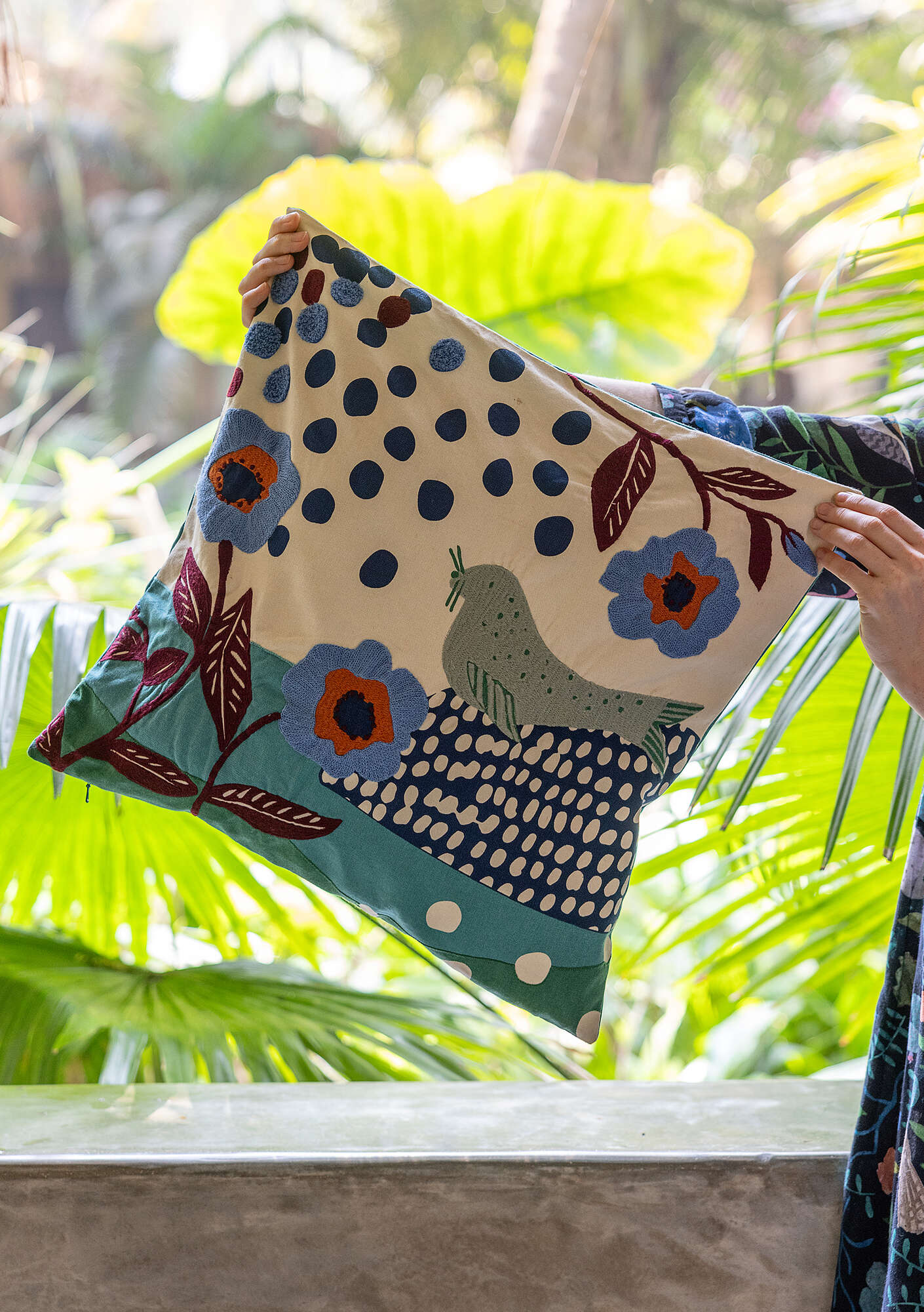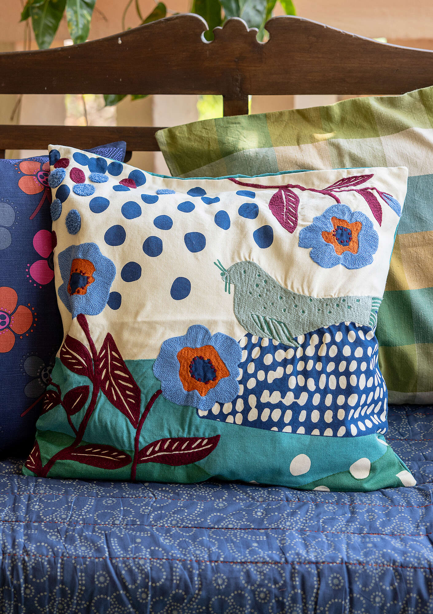 Gudrun Sjödén Homeware Homeware “galapagos” Cushion Cover In Organic Cotton | Blue Lotus