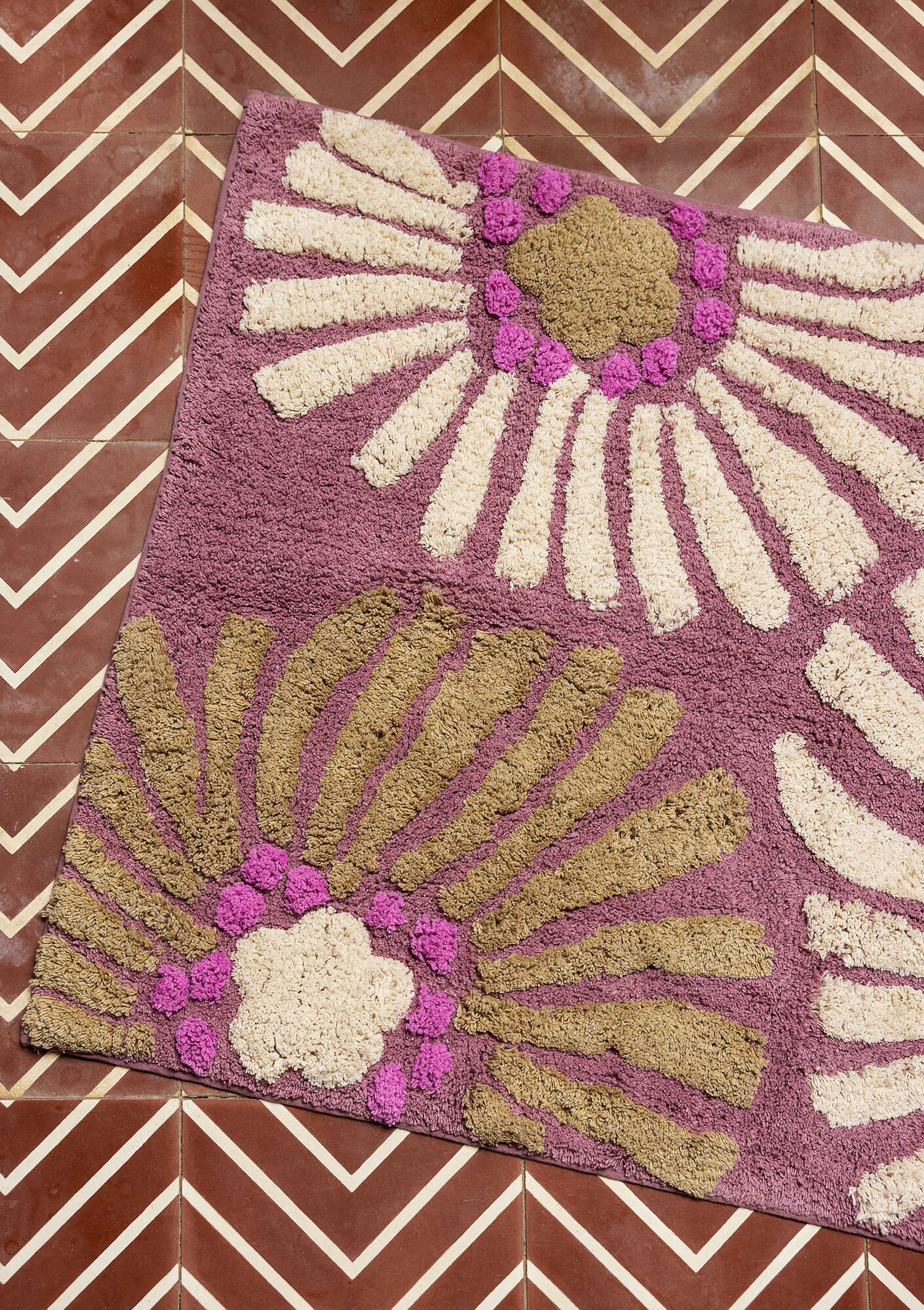 Gudrun Sjödén Homeware Homeware “poppies” Bathroom Mat In Organic Cotton | Mauve