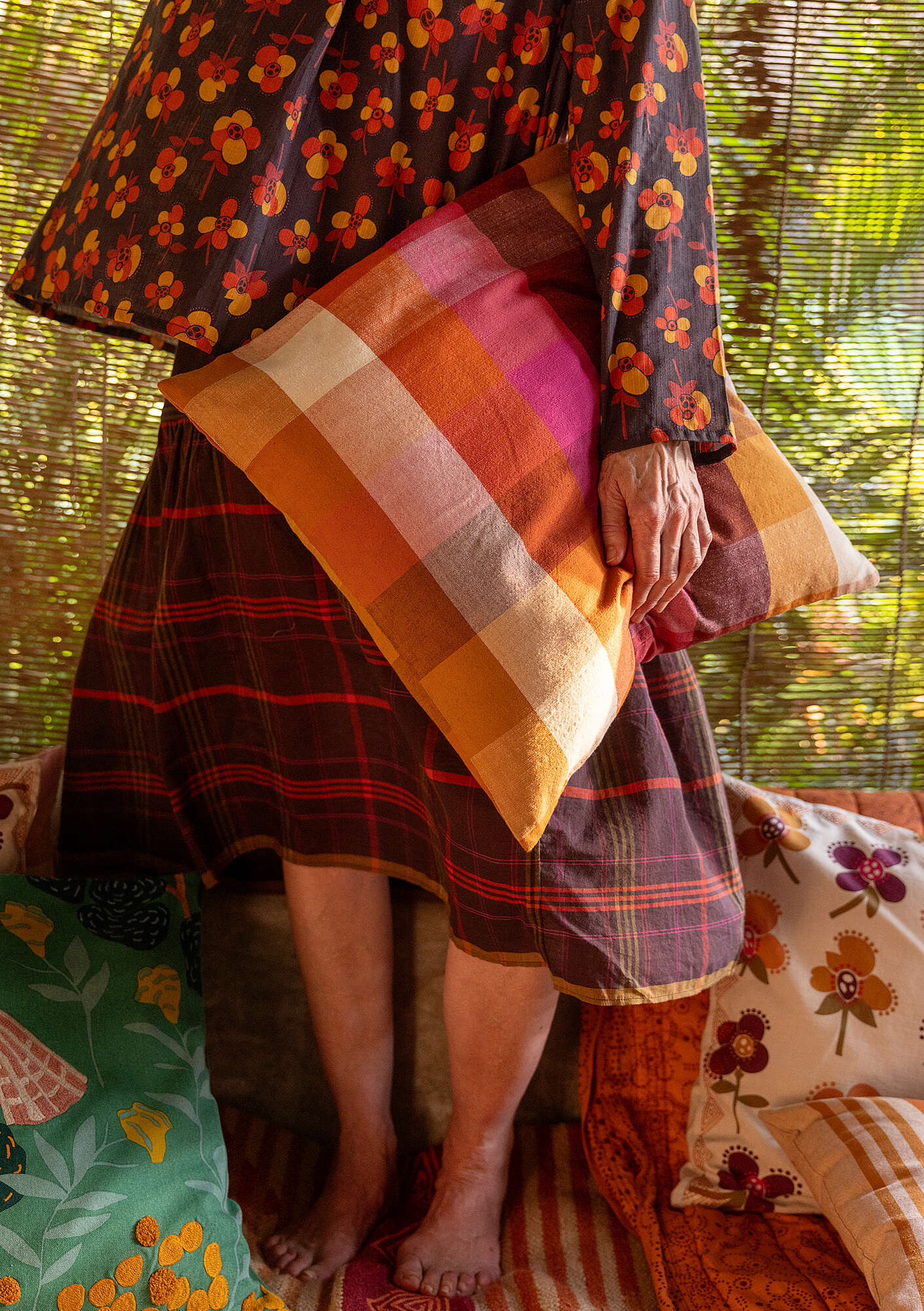 - Sometimes simplicity is best, and our woven checked cushion cover in cheerful colors is a lovely, eye-catching piece for the sofa or your favorite armchair. Hidden zipper at the side.Size and Measurement