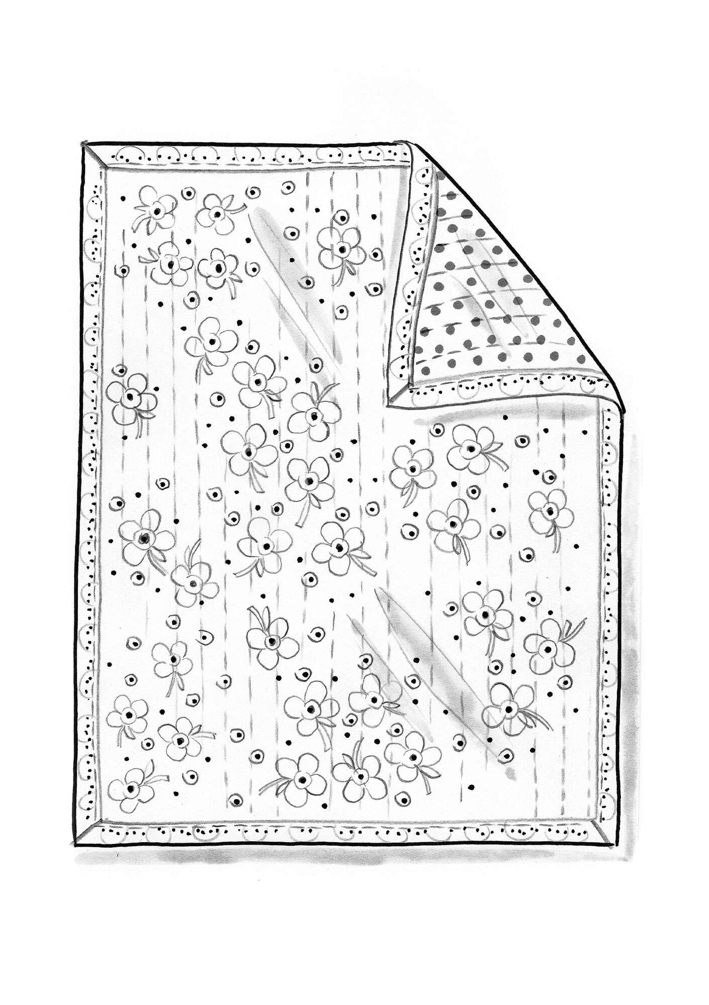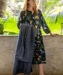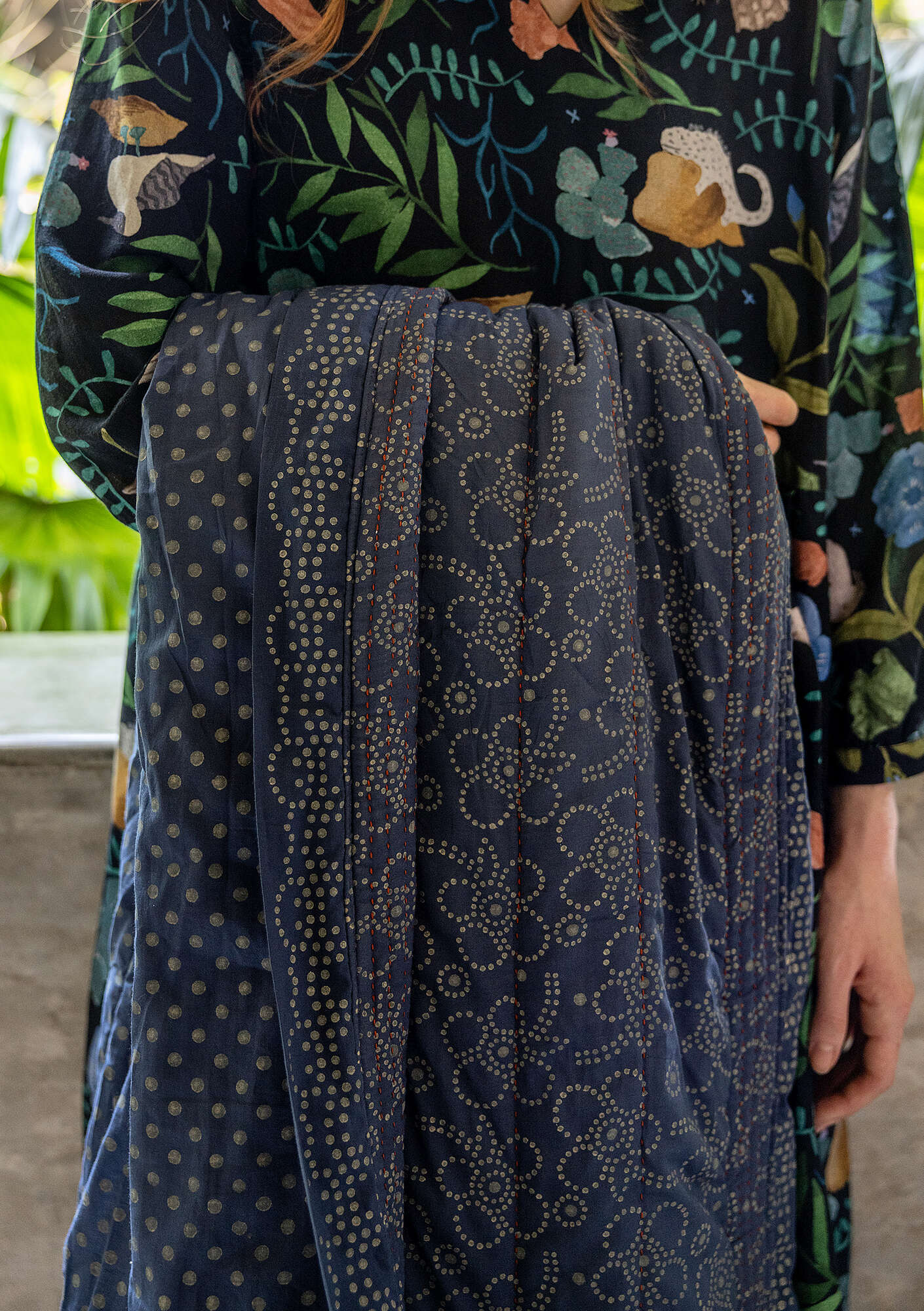 - 100% cotton. 100% cotton wadding. The cotton is certified organic. The fabric is block-printed by hand. Hand wash cold. Do not spin dry. Medium iron. Made in Bagru, India.