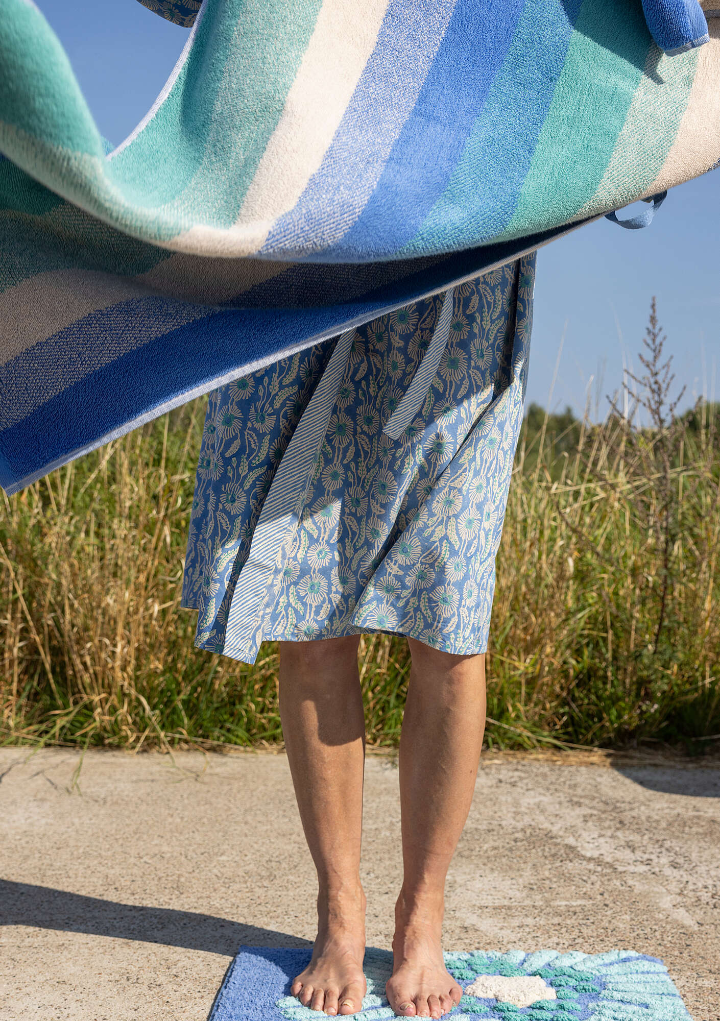 Gudrun Sjödén Homeware Room “waves” Bath Towel In Organic Cotton | Sea Blue