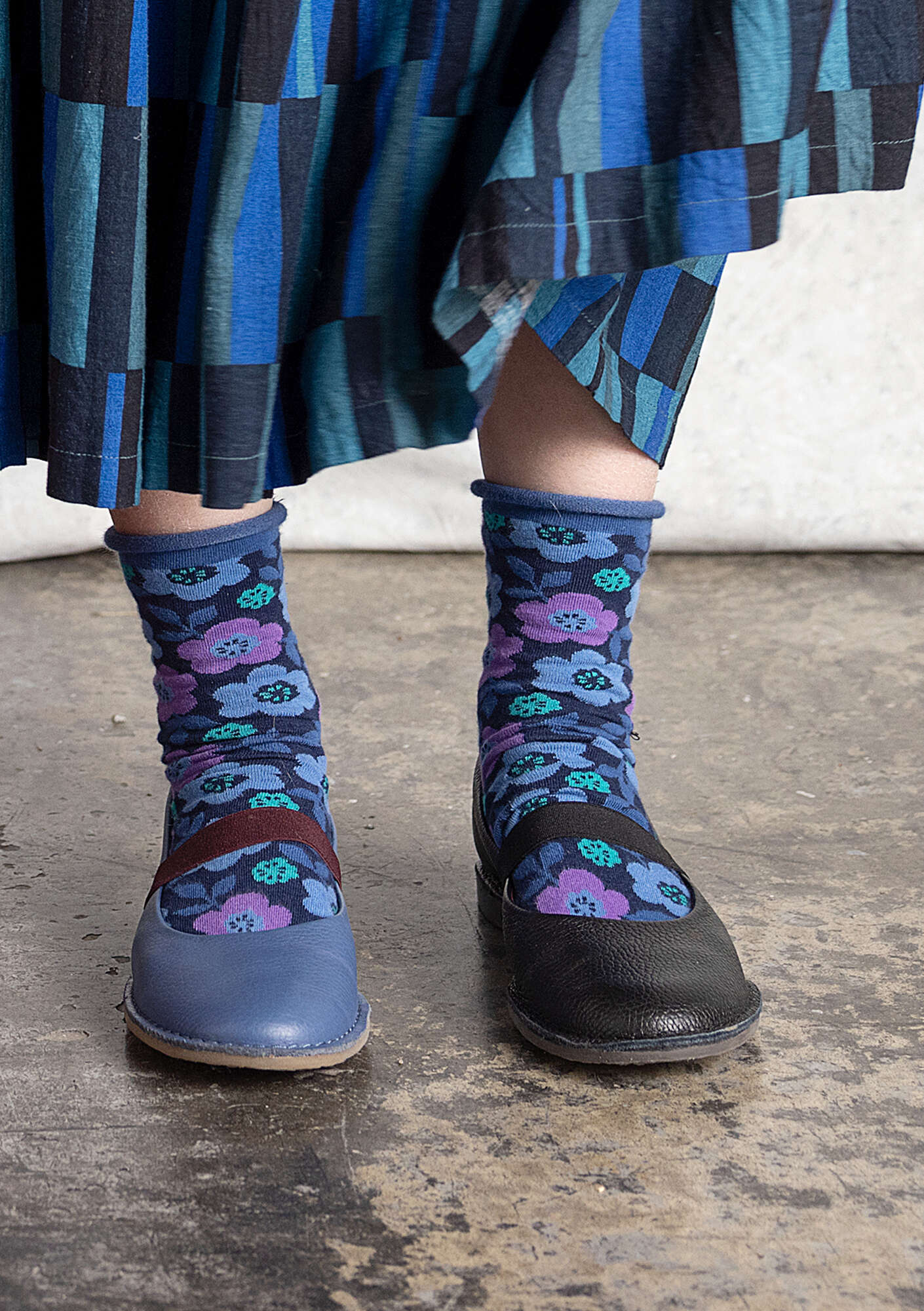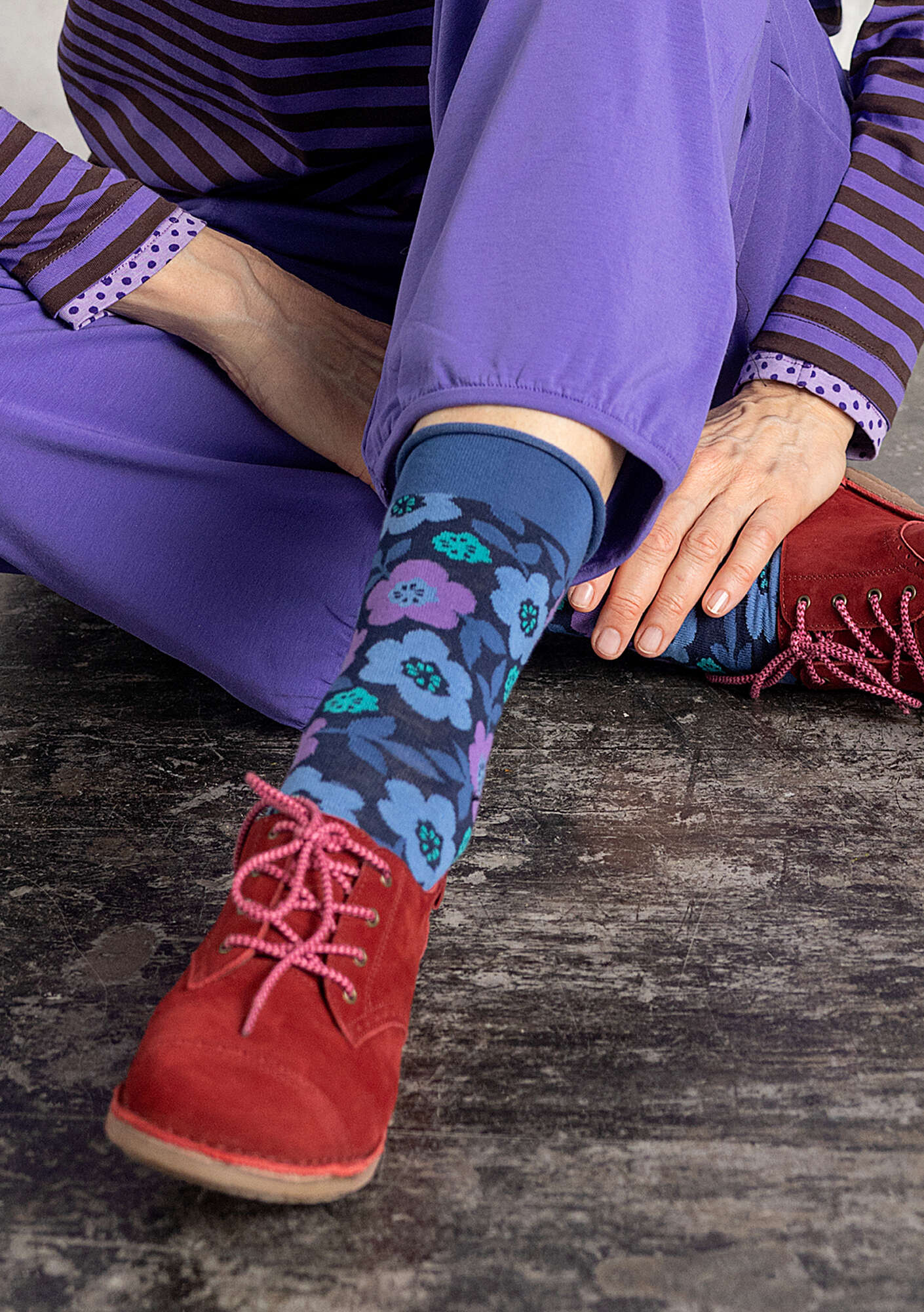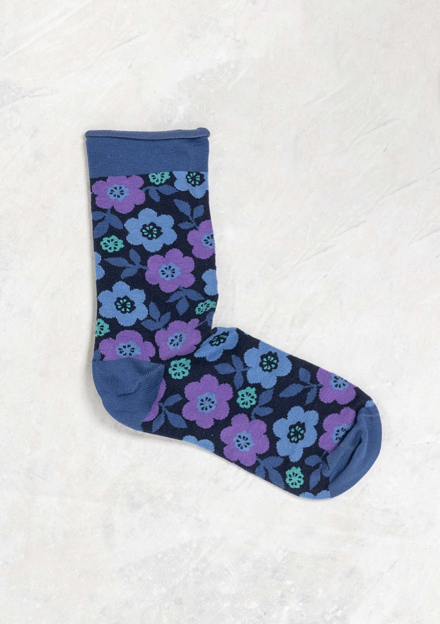 - Floral socks in several fabulous colors. Comfortable rolled edge in an accent color at the top.Size and Measurement