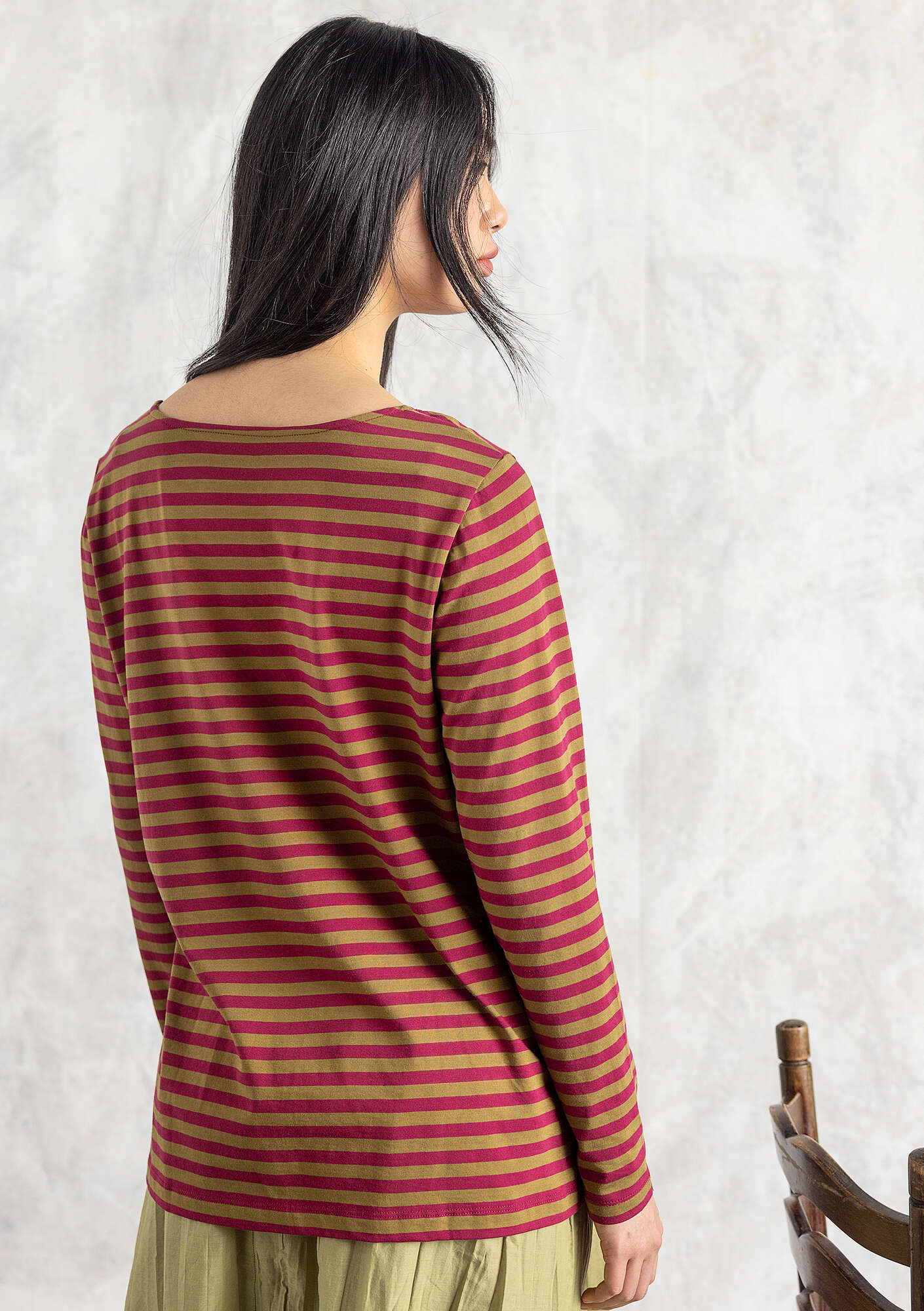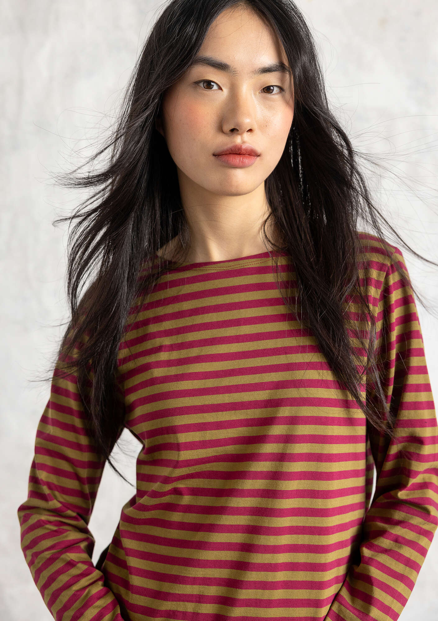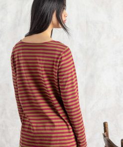 Gudrun Sjödén Women’s Clothes Essential Striped Top In Organic Cotton | Red Cabbage & Dark Olive