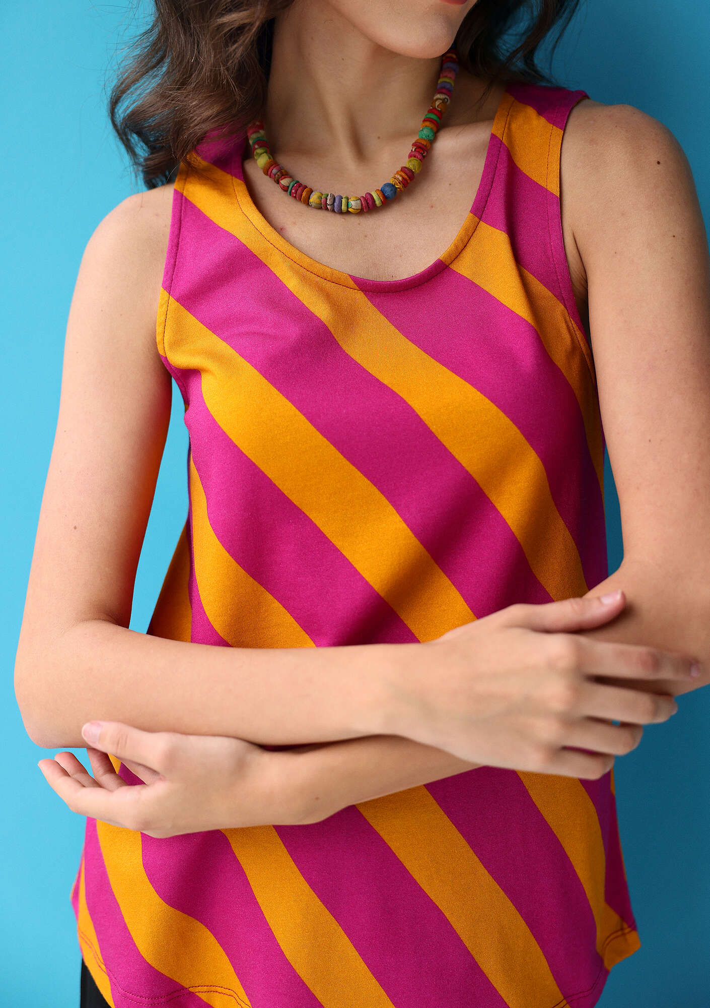 - Patterned jersey tank top with a round neckline. Printed with diagonal stripes in cheerful colors.Size and Measurement