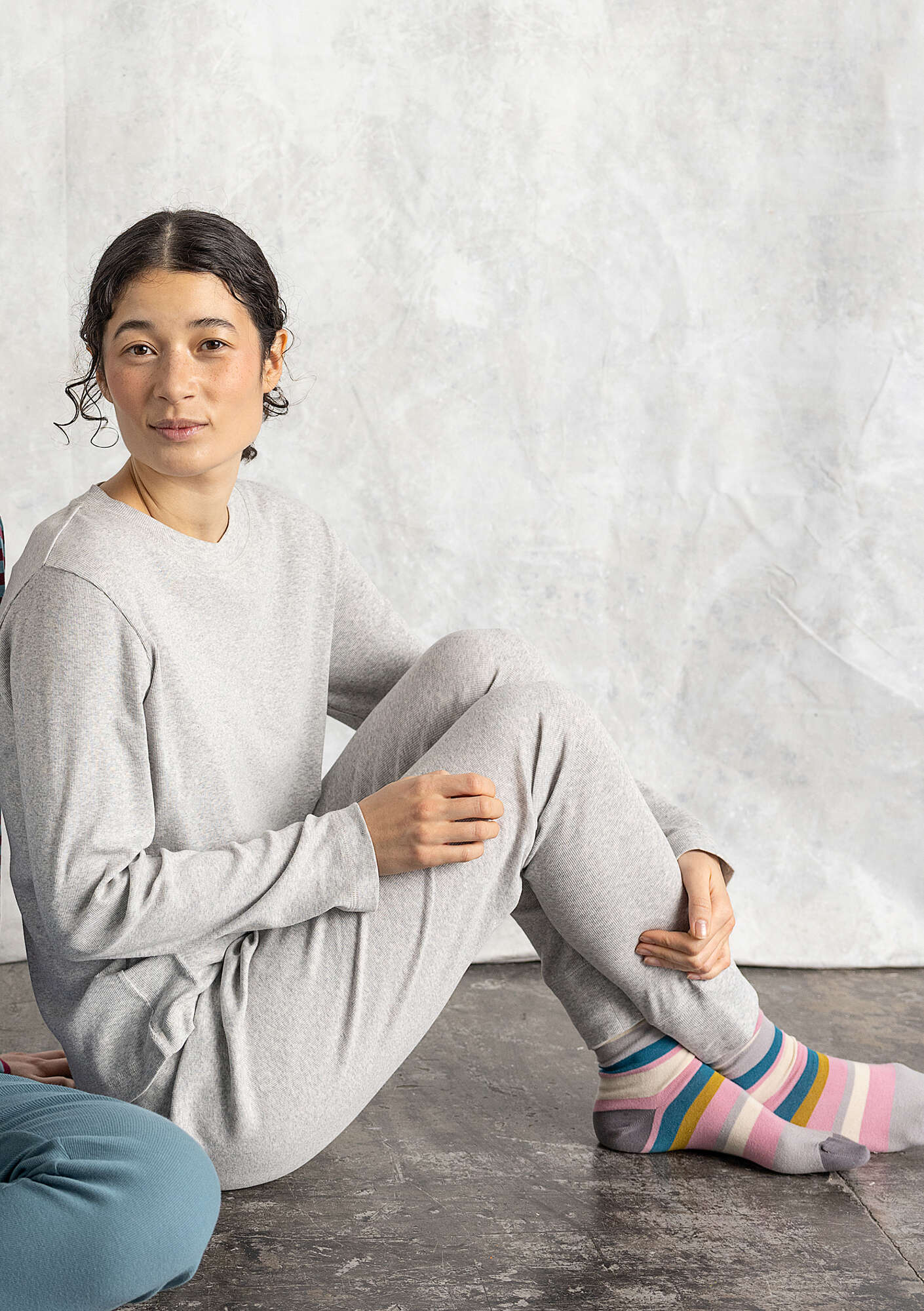 - Full-length leggings in a comfy ribbed fabric. Style with wider ribbing at the cuffs. Decorative flatlock seams. Comfortable elastic waist. Wear with a dress, top or tunic.Size and Measurement