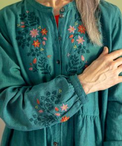 Gudrun Sjödén Women’s Clothes “marianne” Woven Dress In Organic Cotton/linen | Dark Petrol Blue