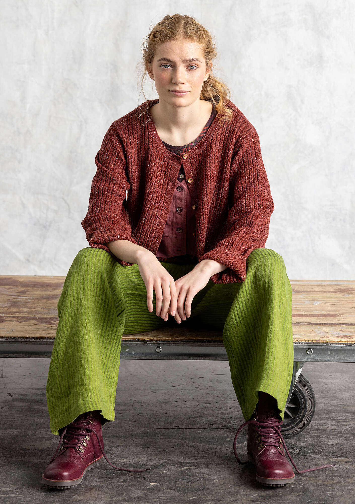 Gudrun Sjödén Women’s Clothes Nubby Cardigan In A Lambswool Blend | Red Curry & Melange