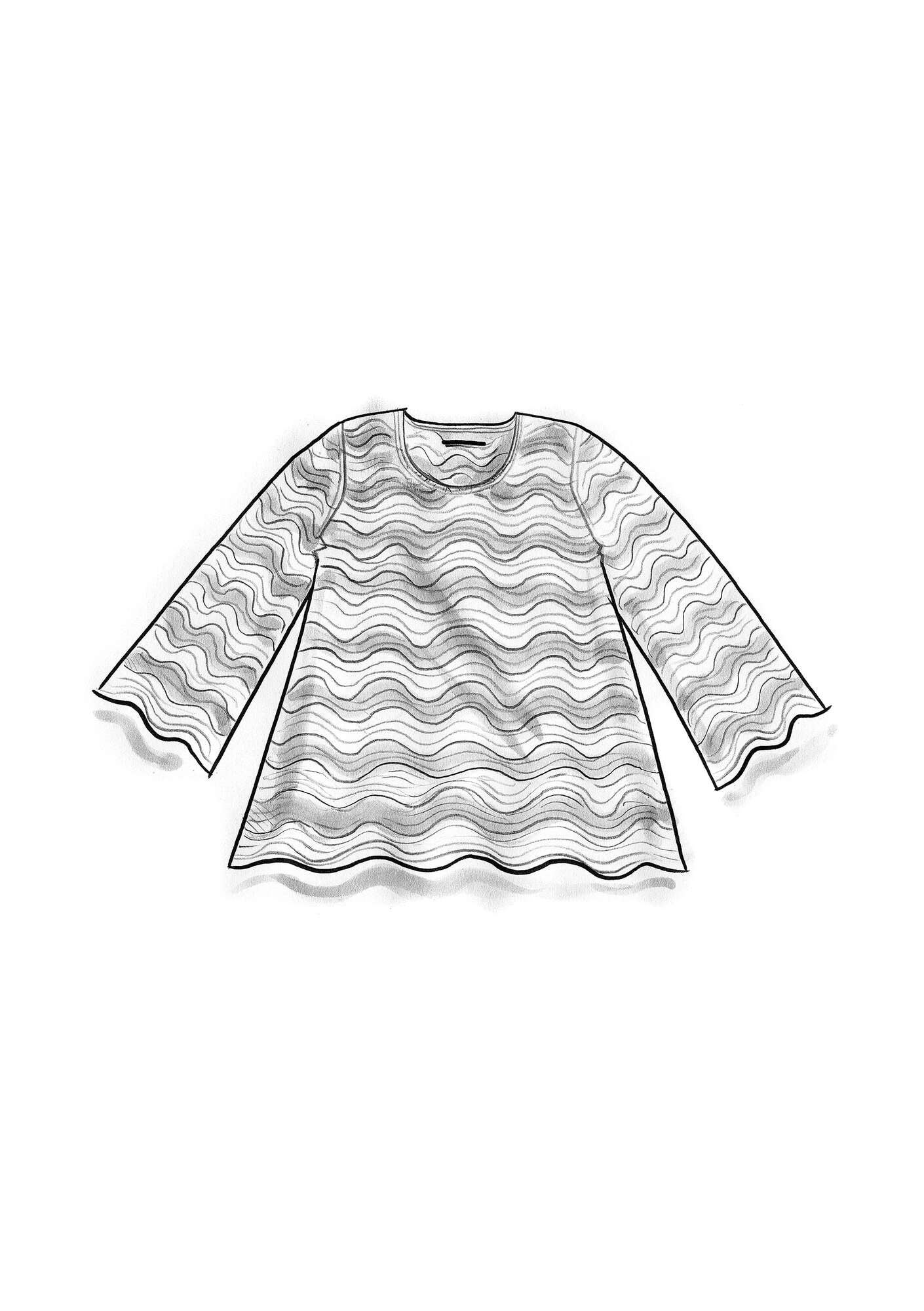 Fit Standard fit, but generous fit at the bottom. Length: M 24" 1/2 Bust width: 19.75" 1/2 Hem width: 26" Sleeve length from the center-back: 26"