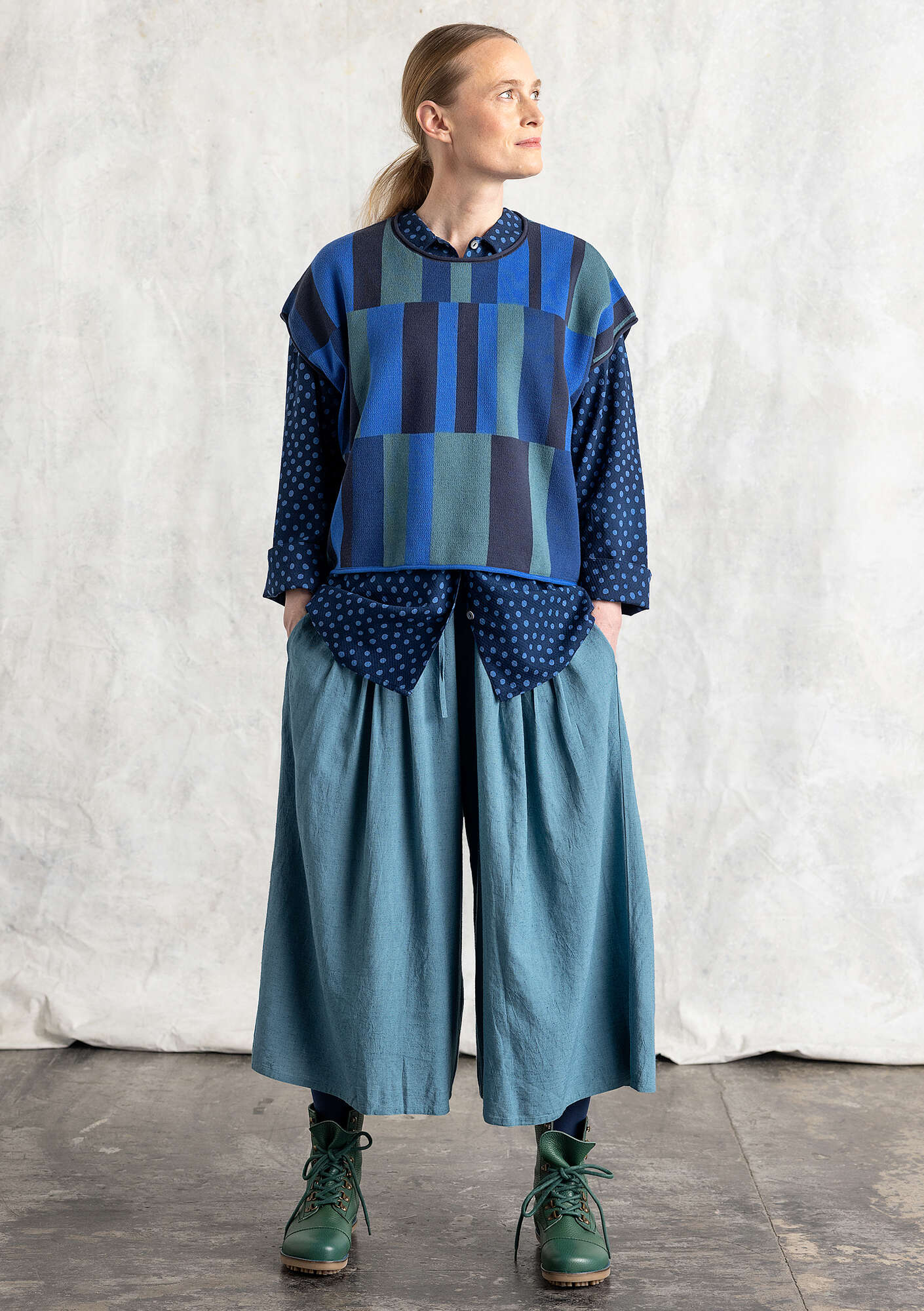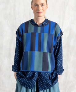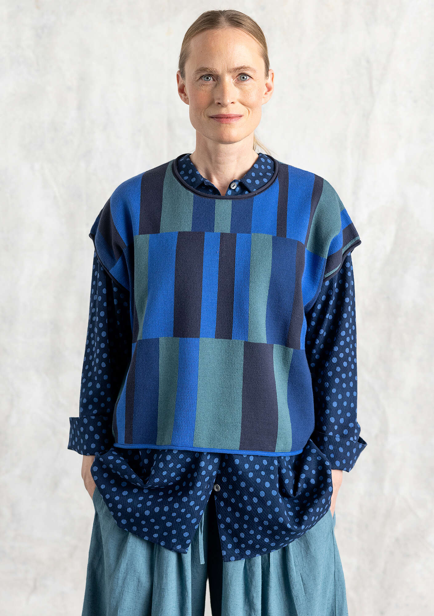 Gudrun Sjödén Women’s Clothes “rut” Knit Vest In Organic/recycled Cotton | Indigo Blue & Check