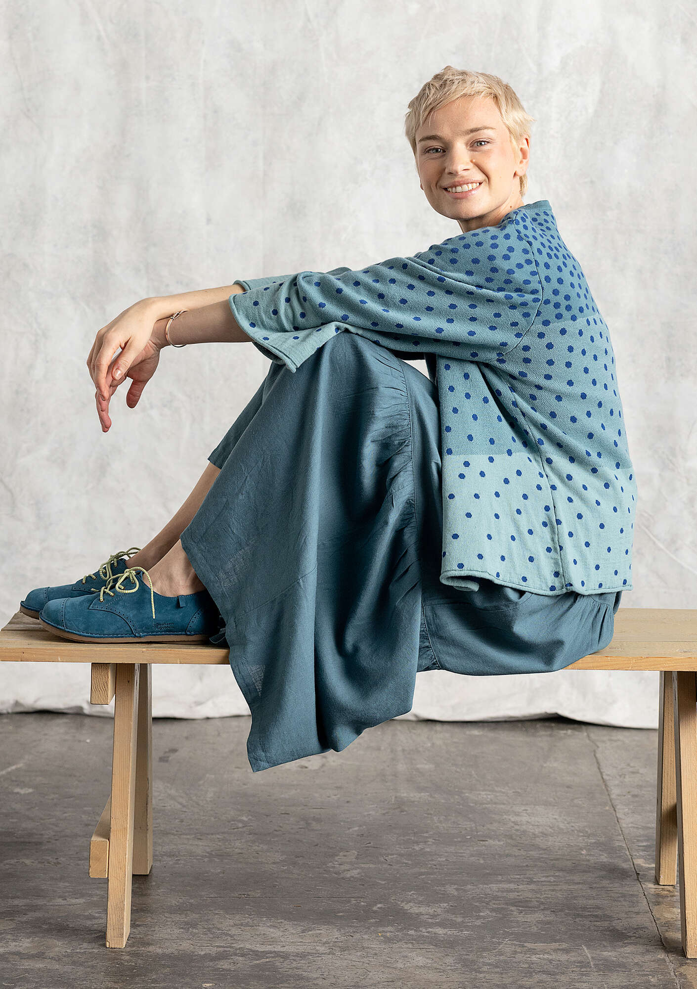 - 100% cotton. 62% of the cotton is recycled. 38% of the cotton is certified organic. The recycled cotton is certified and composed of textile production scraps that have been spun into new fibers. The dyeing process is certified. Machine wash warm, delicate cycle. Gently reshape while damp. Dry flat. Store flat. Shrinkage 4-5%. Made in Casablanca, Morocco.