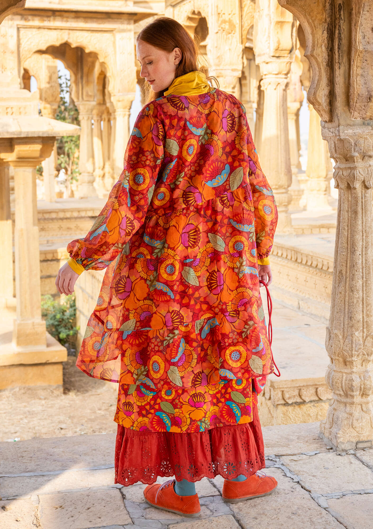 - 100% cotton. The printing process is certified. Machine wash cold, delicate cycle. Medium iron. Shrinkage 2-3%. Made in Faridabad, India.