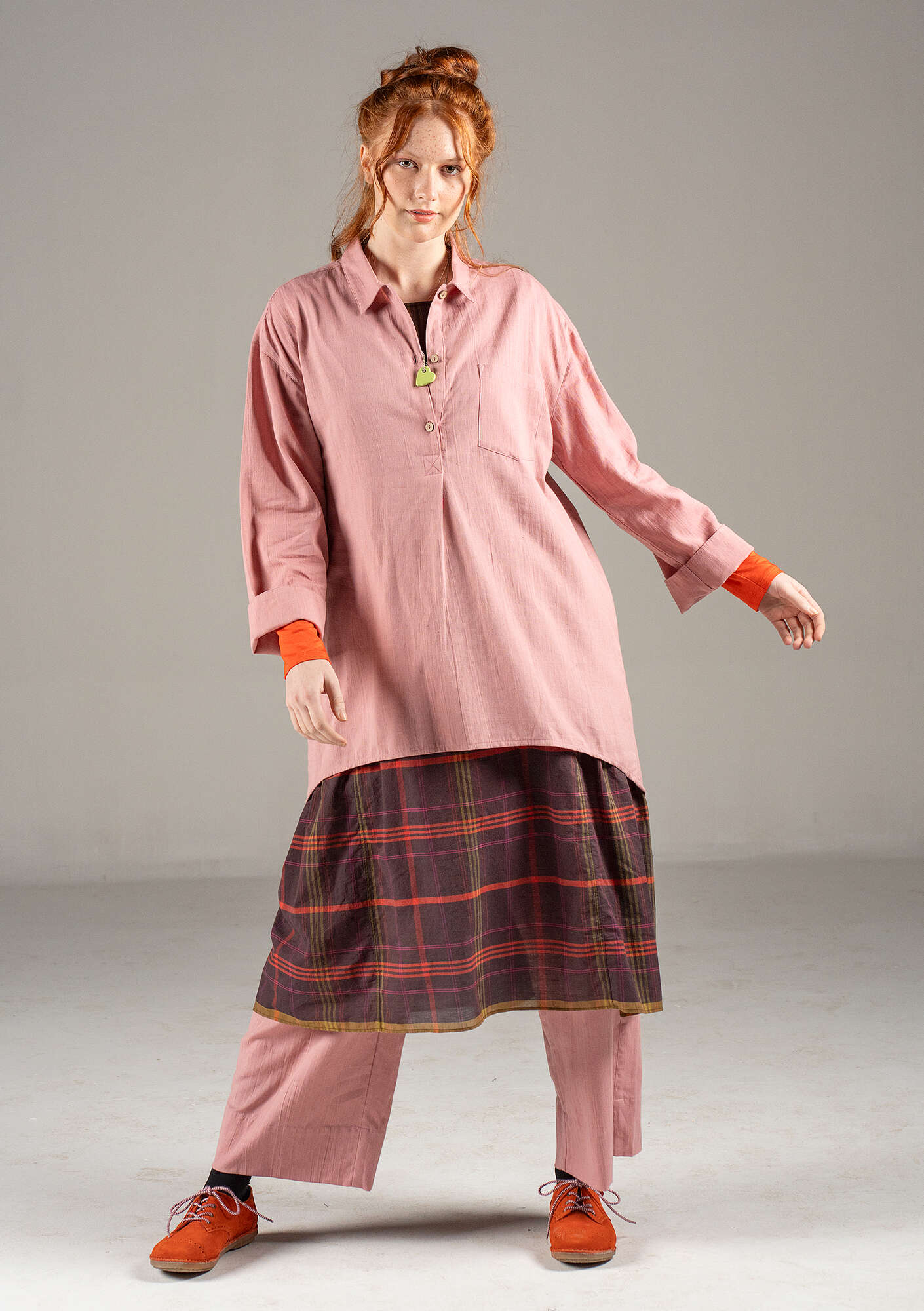 - Comfortable style with a collar and long sleeves. Rounded hem, slightly longer at the back than at the front. Chest pocket and beautiful coconut buttons.Size and Measurement