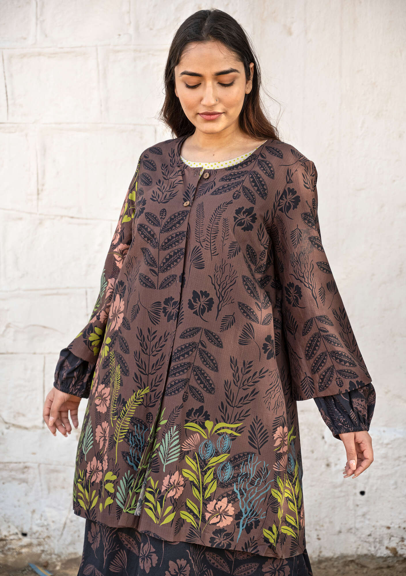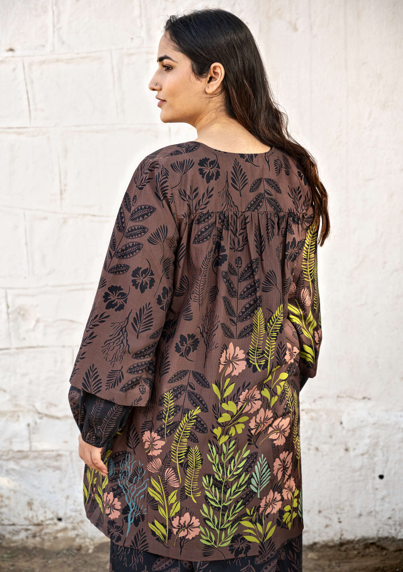 Gudrun Sjödén Women’s Clothes Woven “tahiti” Tunic In Organic Cotton | French Roast