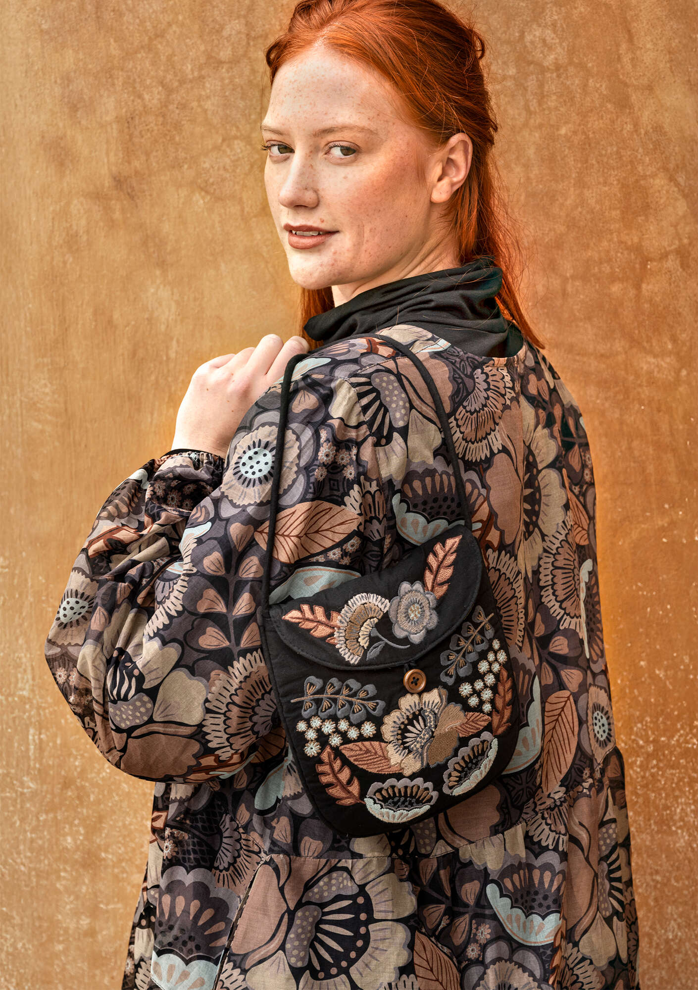 Gudrun Sjödén Women’s “hana” Embroidered Bag In Organic Cotton | Black