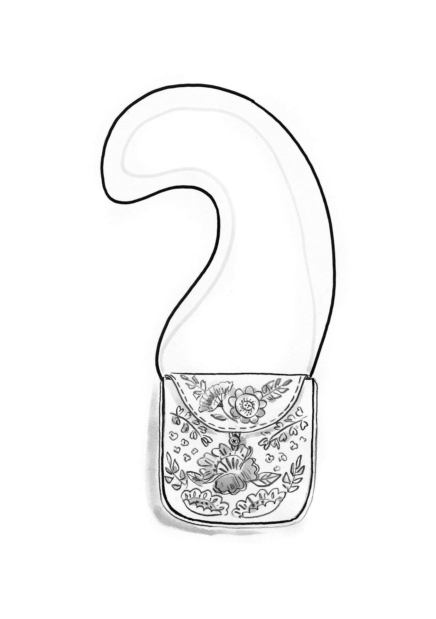 - Embroidered cotton bag, lined inside. Round shoulder strap and a flap with a simple wooden button closure.Size and Measurement