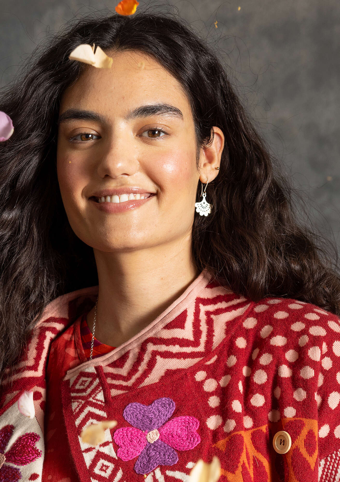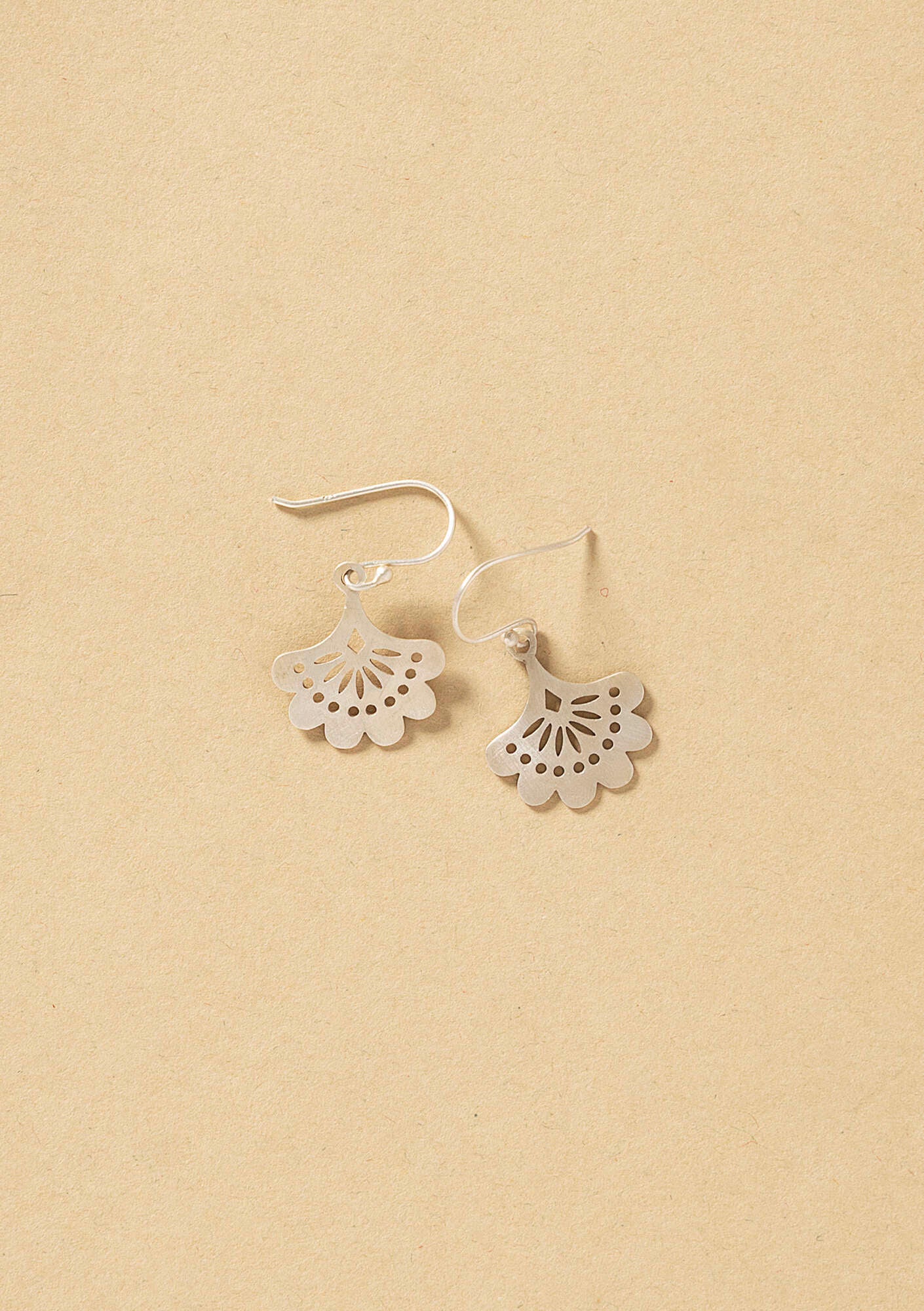 - Exclusive leaf-shaped earrings in 925 sterling silver with punched-out details. Comes in a small cloth bag. Sold as a pair.Size and Measurement