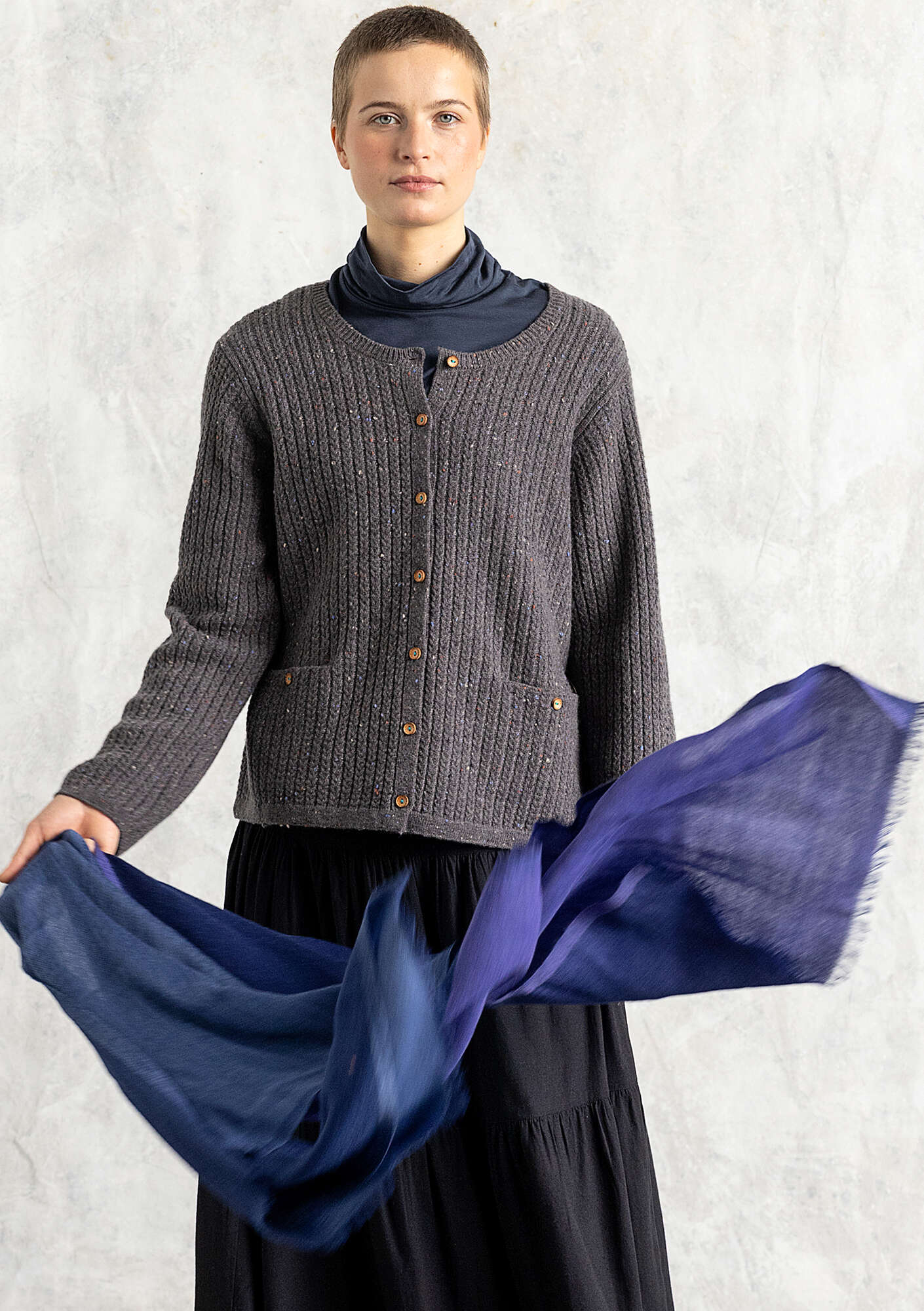 - 100% wool.We suggest airing this garment or steaming with an iron. As a last option, hand wash cold or wash in the washing machine set to the wool-wash cycle. Use wool detergent. Shrinkage 3-4%. Made in Kundli, India.
